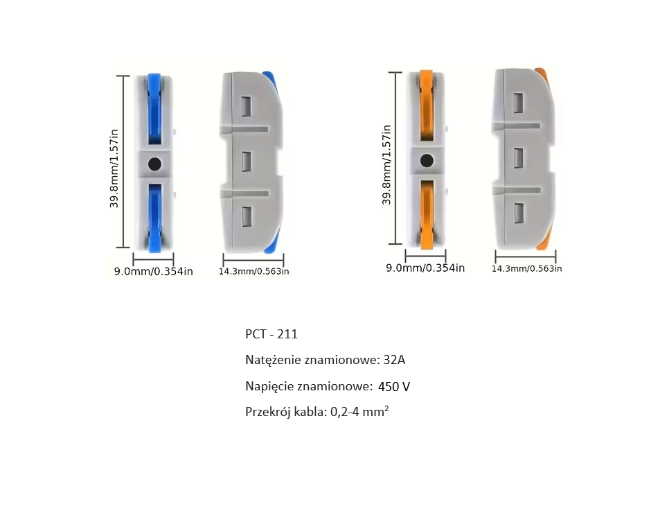 - przekrój kabla: 0,2 - 4 [mm2]