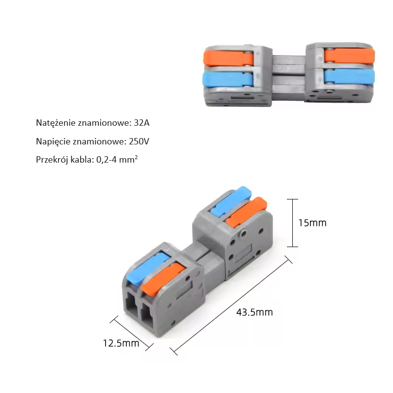 Szybkozłączka elektryczna na drut/linkę 4x4 - 2x2 - click