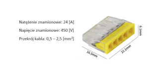 Szybkozłączka elektryczna na drut/linkę 5x2,5 (5 szt.)