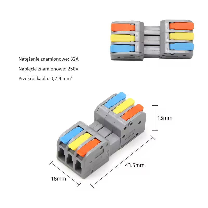 Szybkozłączka elektryczna na drut/linkę 6x4 - 3x3 - click