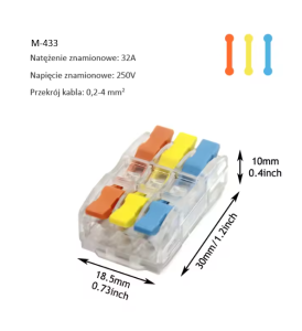 Szybkozłączka elektryczna na drut/linkę 6x4 - rozgałęźnik 3-3 (4 szt.)