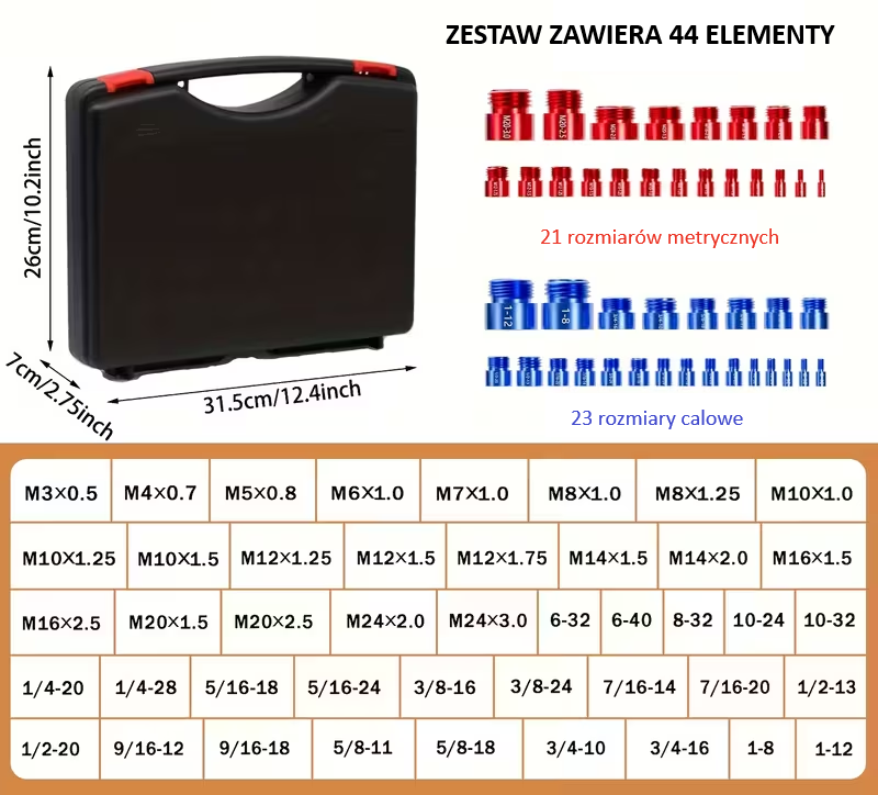 ILOŚĆ: 1 komplet = 44 elementy + opakowanie (walizka)