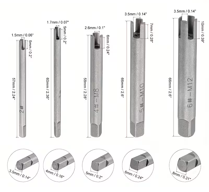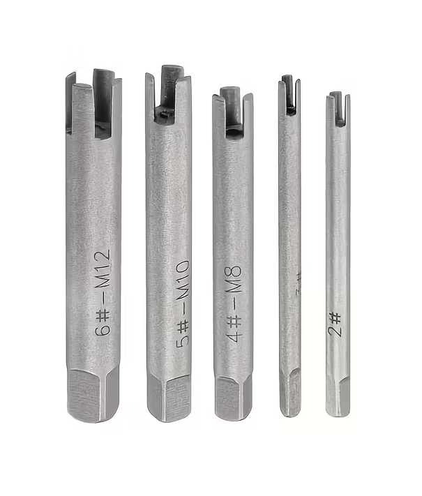 - zestaw zawiera uchwyty do wykręcania złamanych gwintowników: M5, M6, M8, M10, M12